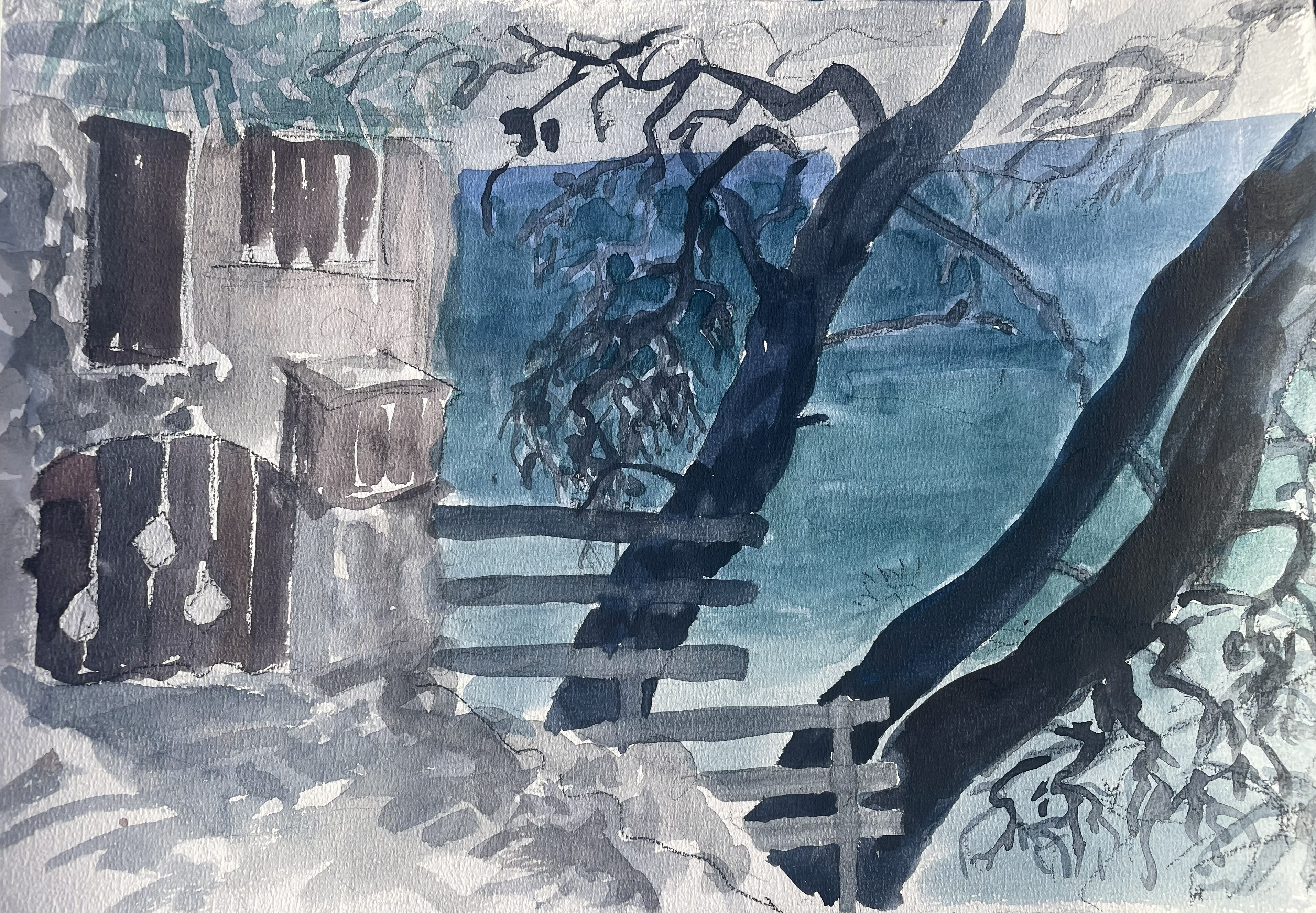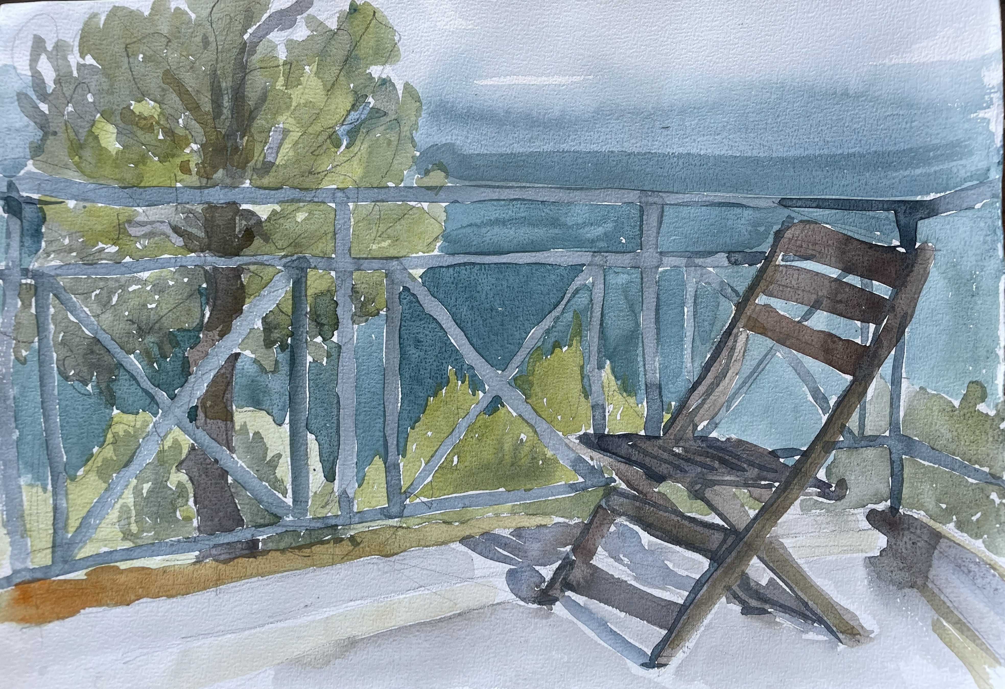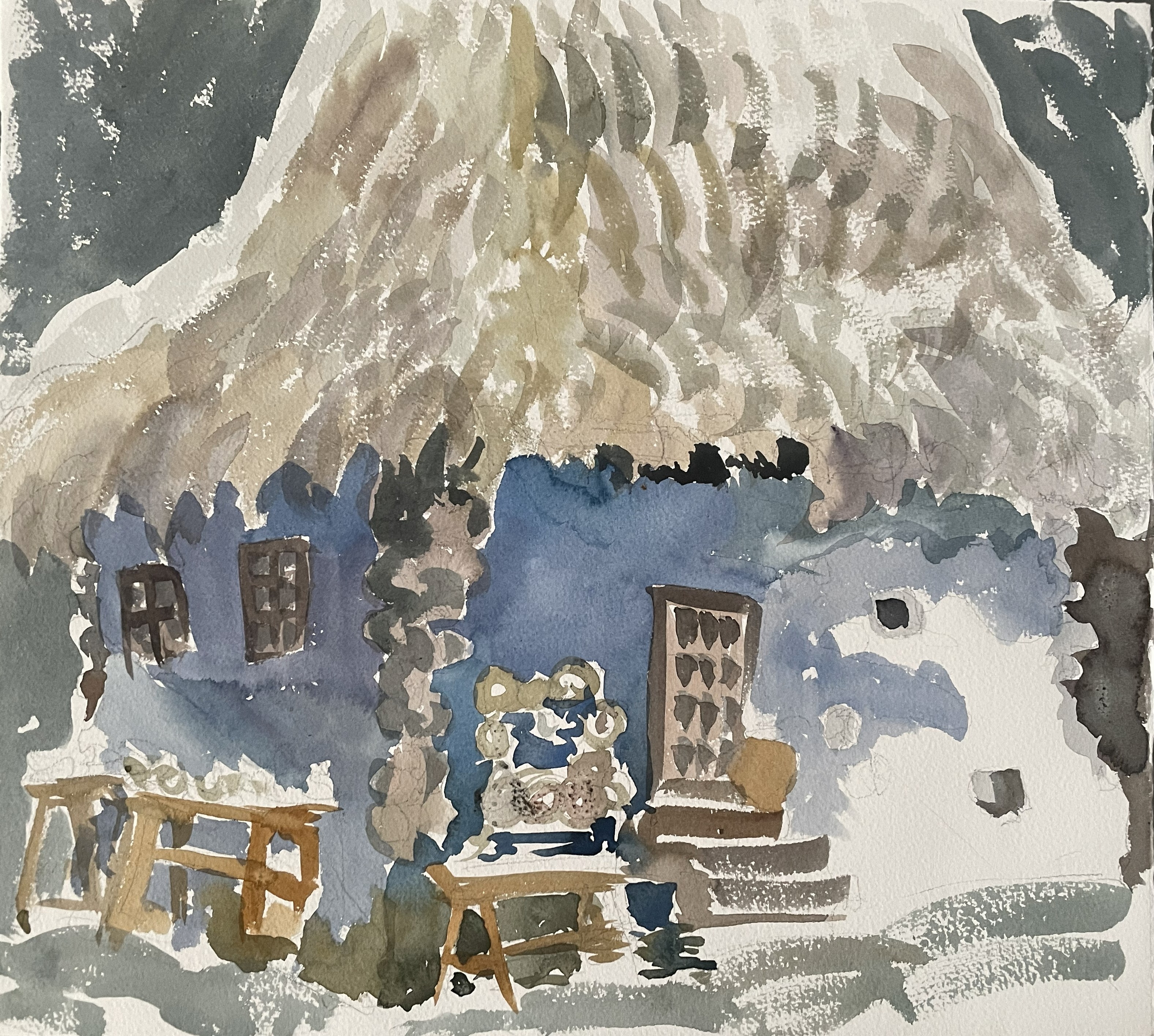 Terasa, Halkidiki, 2025, watercolor on paper.